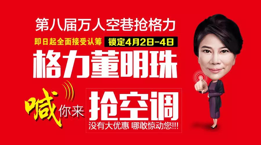 搶槍搶。!華商空調(diào)第八屆“萬人空巷搶格力”活動(dòng)開始啦!沒有大優(yōu)惠,哪敢驚動(dòng)您!保價(jià)300天,錯(cuò)過沒機(jī)會(huì),不用找熟人,找朋友,找關(guān)系,臺(tái)臺(tái)工程價(jià),現(xiàn)已全面接受認(rèn)籌,活動(dòng)時(shí)間鎖定4月2日-4月4日,認(rèn)籌時(shí)間截止到2017年4月1日,贈(zèng)價(jià)值268元蒸鍋1套,享受廠家超低直銷價(jià)格,整機(jī)免費(fèi)包修10年!四月買空調(diào),買的便宜安的快,大家快來認(rèn)籌吧!