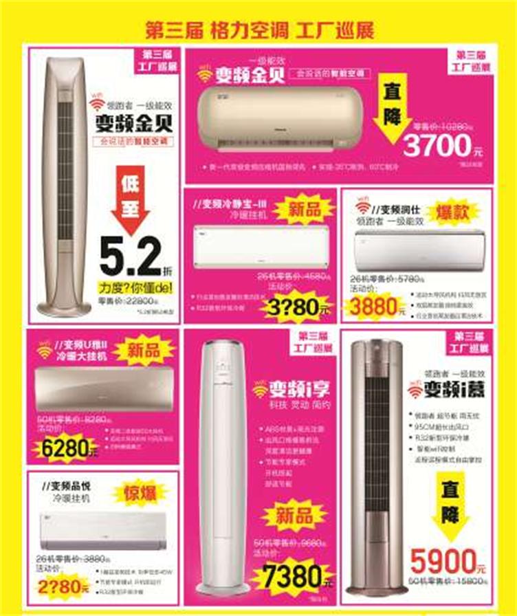 華商空調(diào)又有大動(dòng)作了!!格力空調(diào)2017年度工廠巡展,董總操盤(pán)只要銷量,不談價(jià)格。僅此一次,價(jià)格低到超乎你想象!即日起全面接受認(rèn)籌,當(dāng)天憑入場(chǎng)券可以免費(fèi)領(lǐng)取268元白鋼蒸鍋一個(gè)!享受10年保修,四項(xiàng)免費(fèi)!超低的價(jià)格,超快的安裝,超值的服務(wù),還有一款“會(huì)說(shuō)話”的空調(diào)等你們來(lái)參觀哦!想買空調(diào)的你們還在等什么?快來(lái)?yè)屬?gòu)入場(chǎng)券吧!